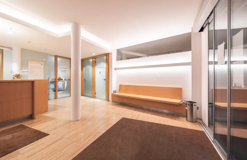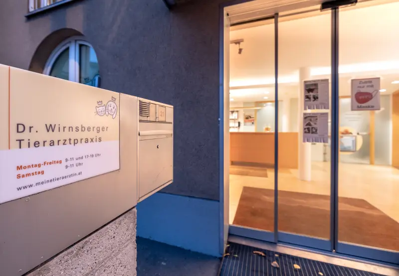 Unsere Tierarztordination liegt gut erreichbar in der Weidlinger Straße 21 in 3400 Klosterneuburg. Ein barrierefreier Eingang ermöglicht Ihnen einen einfachen Zugang zur Tierarztpraxis. Gehbehinderte Kunden haben, ebenso wie ältere oder frisch operierte Hunde, keine Stufen zu überwinden. Auch die Mitnahme von Kinderwägen direkt in die Behandlungsräume ist möglich. Im Sommer gewährleistet eine Klimaanlage kühle Raumluft, für unsere kreislaufkranken Patienten stellt das eine angenehme Erleichterung dar.